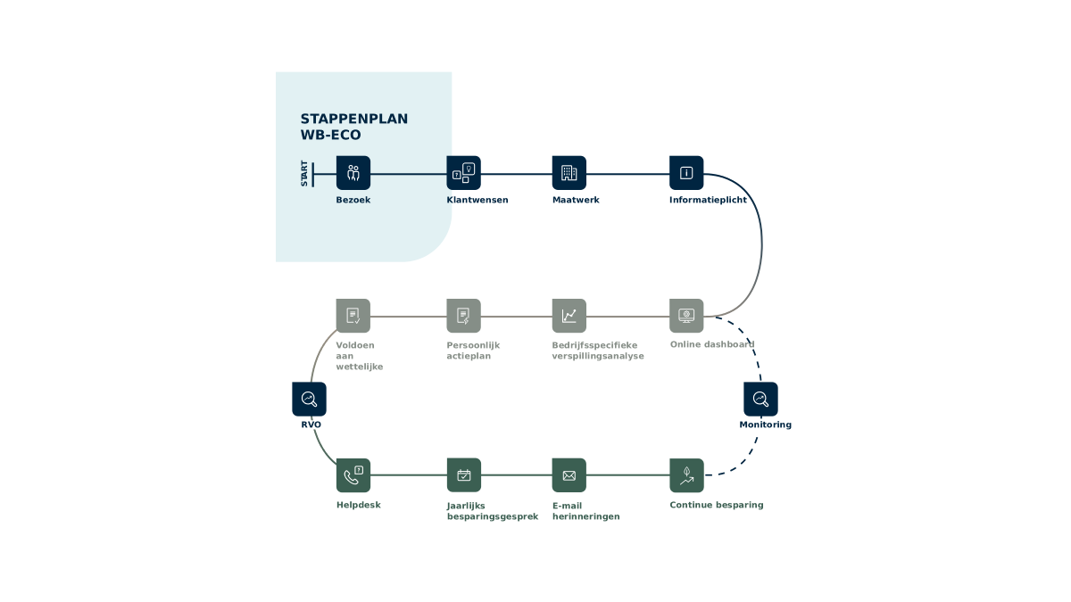 En vaak zit de winst in ogenschijnlijk kleine dingen. ‘Als je ziet dat een installatie twee uur eerder opstart dan nodig is, dan heb je het over structureel energieverlies,’ legt De Jong uit. ‘Dat gebeurt niet één dag, maar het hele jaar door.’ WB-ECO fungeert daarmee niet alleen als monitor, maar ook als coach… precies zoals de naam belooft. Het platform ondersteunt klanten bij het stellen van doelen, het volgen van prestaties en het bijsturen waar nodig. In combinatie met advies en begeleiding vanuit de afdeling Duurzaam ontstaat zo een continu proces van optimalisatie.
